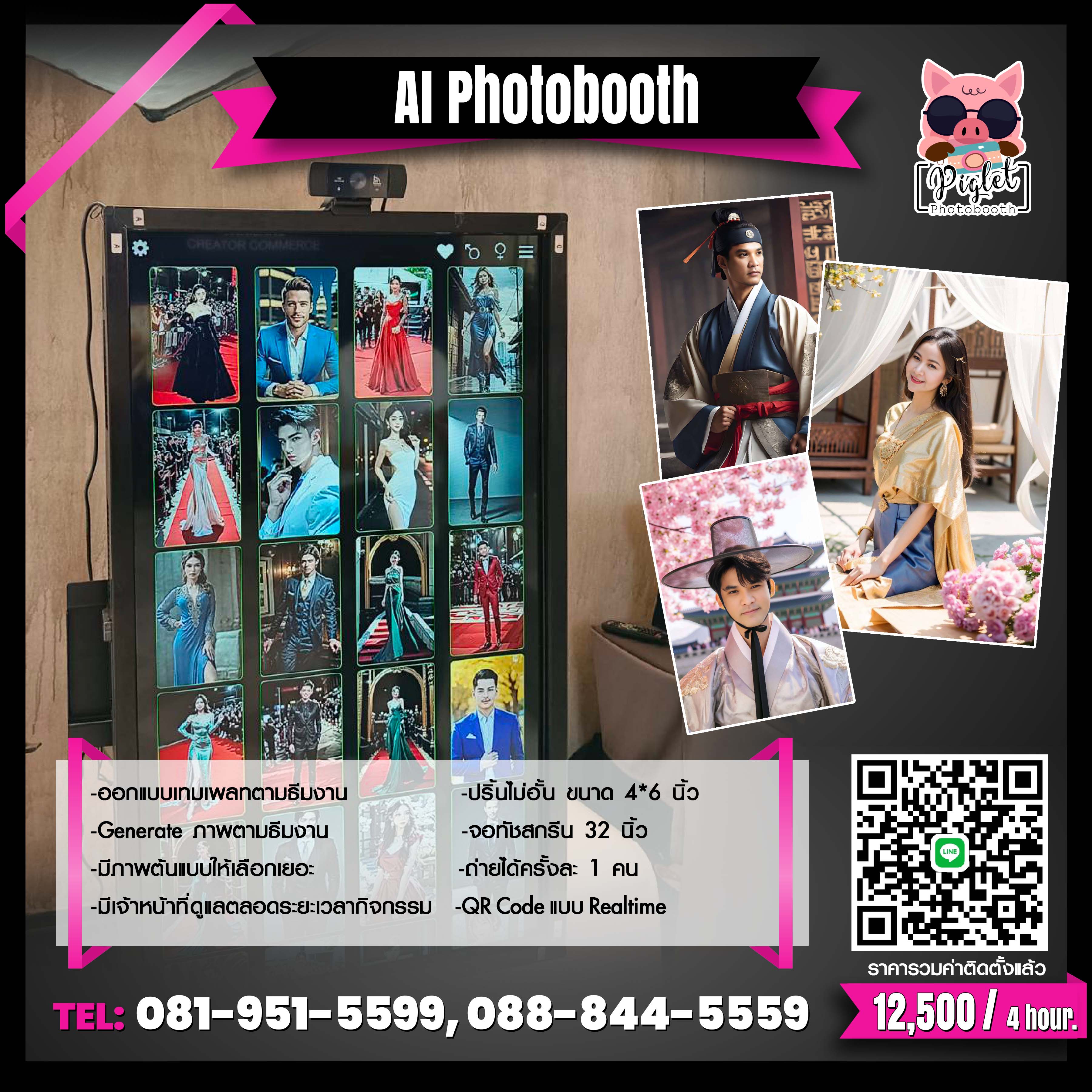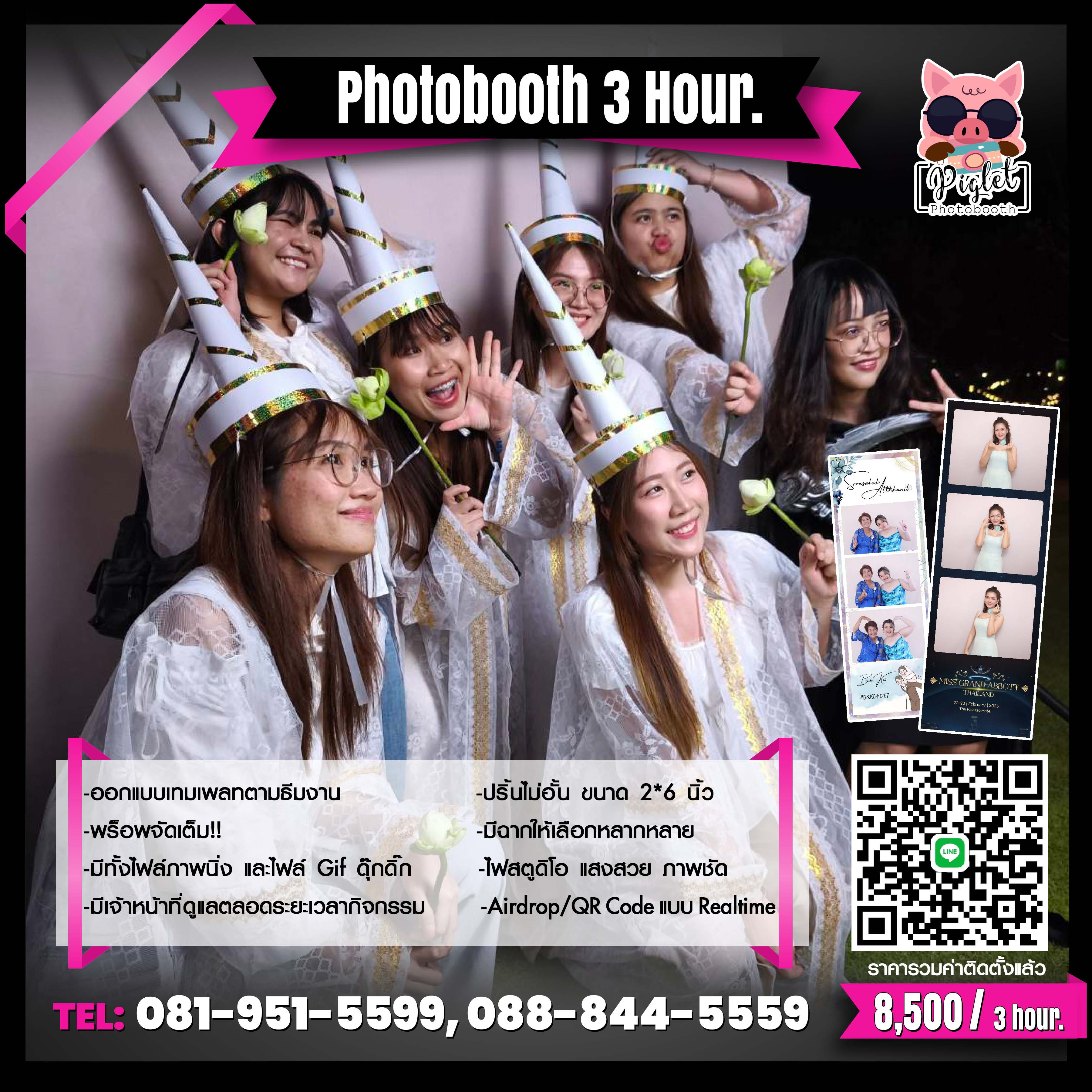 ...บริษัท พิกเล็ท โฟโต้บูธ (Piglet Photobooth Co.,Ltd) ให้บริการถ่ายภาพโฟโต้บูธทั่วประเทศ มีทั้งแบบฉาก (มีสีฉากให้เลือกตามธีมงาน ถ่ายได้หลายคน), แบบตู้ถ่ายรูป (คุณภาพคมชัดกว่าสติ๊กเกอร์) และ 360 Video Booth / 360 Over Head (สามารถดาวน์โหลดไฟล์วิดีโอได้ทันที) และใหม่ล่าสุด!! Photobooth AI / AI Face Swap ที่จะ Generate คุณ ให้สวยเหมือนภาพตามธีมงาน (สามารถถ่ายได้ทั้งแบบคนเดียว และถ่ายกับแก๊งเพื่อน) รวมถึง High Angle Box Photo Booth สไตล์เกาหลีเกาใจสำหรับเด็กแนว เหมาะกับทุกกิจกรรมบันเทิง ไม่ว่าจะเป็นงานเลี้ยงบริษัท งานแต่งงาน งานวันเกิด งานขึ้นบ้านใหม่ งานเกษียณ งานอีเวนท์ งานเปิดตัวสินค้า หรืองานรื่นเริงบันเทิงต่างๆ สิ่งที่จะขาดไม่ได้ก็คือ Photobooth ที่จะช่วยสร้างสีสัน ความสนุกสนานเพลิดเพลิน และความประทับใจให้กับผู้ร่วมงาน ให้ได้มีกิจกรรมถ่ายรูปสวยๆ พร้อมพร็อพแบบจัดเต็ม ภาพคมชัด..สวยเนียน..ด้วยกล้อง dslr และไฟสตูดิโอแบบ..เต็มคาราเบล!! เหมาะกับทุกเพศ ทุกวัย ตั้งแต่วัยรุ่นฟันน้ำนม วัยซ่าวัยใส วัยทำงาน ไปจนถึงวัยเก๋า แถมยังดาวน์โหลดรูปโดยการสแกน QR Code หรือส่งผ่่าน Airdrop แบบ Realtime สามารถแชร์ลง Social ได้ทันที และที่สำคัญ..ยังได้รูปถ่ายสวยๆ คุณภาพคมชัด ติดไม้ติดมือกลับไปเก็บไว้เป็นที่ระลึกอีกด้วย...